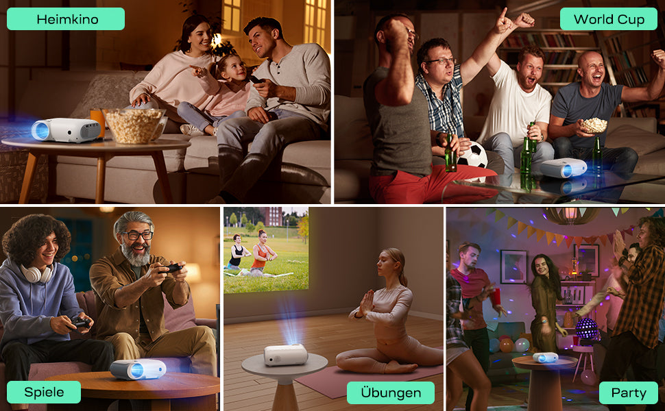 Home Party: Turn your home into the ultimate party destination with the expansive screen of the smart projector. Play your favorite music videos, dance with friends, and savor a unique party atmosphere.