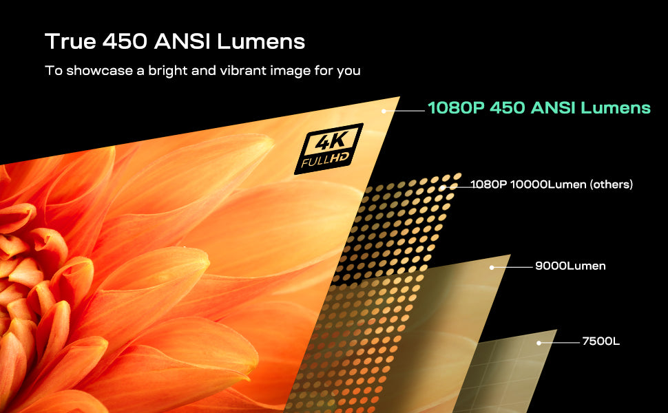 1.The Smart Projector's Real 450 ANSI Lumen Brightness: