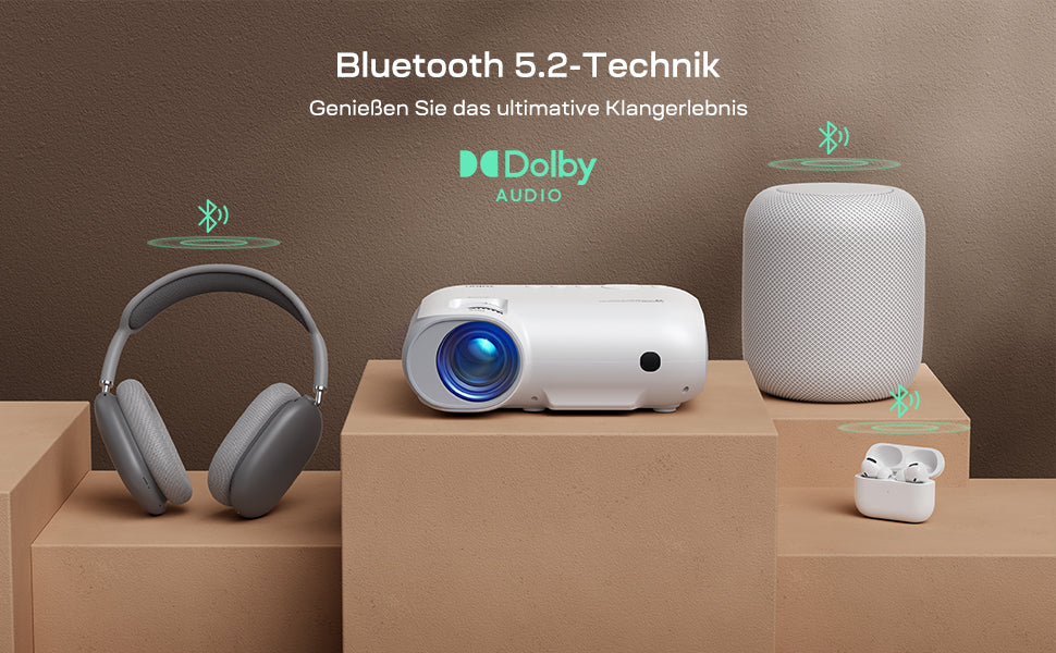 The Y9 Smart Projector is its cutting-edge Bluetooth 5.2 technology. This powerful built-in chip empowers you to seamlessly connect soundbars, wireless headphones, and headsets via Bluetooth. Say farewell to the constraints of wired audio devices and the headache of tangled cables.