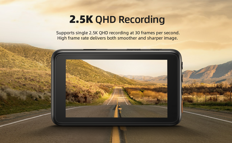 【Ultra HD Resolution】 - With WQHD 2688*1520P@30FPS max, 1440P front & 1080P rear dual lens, capture the roads simultaneously in ultra clear definition. Equipped with 170° wide angle for dual dash cam monitors all directions without visual blind zone.