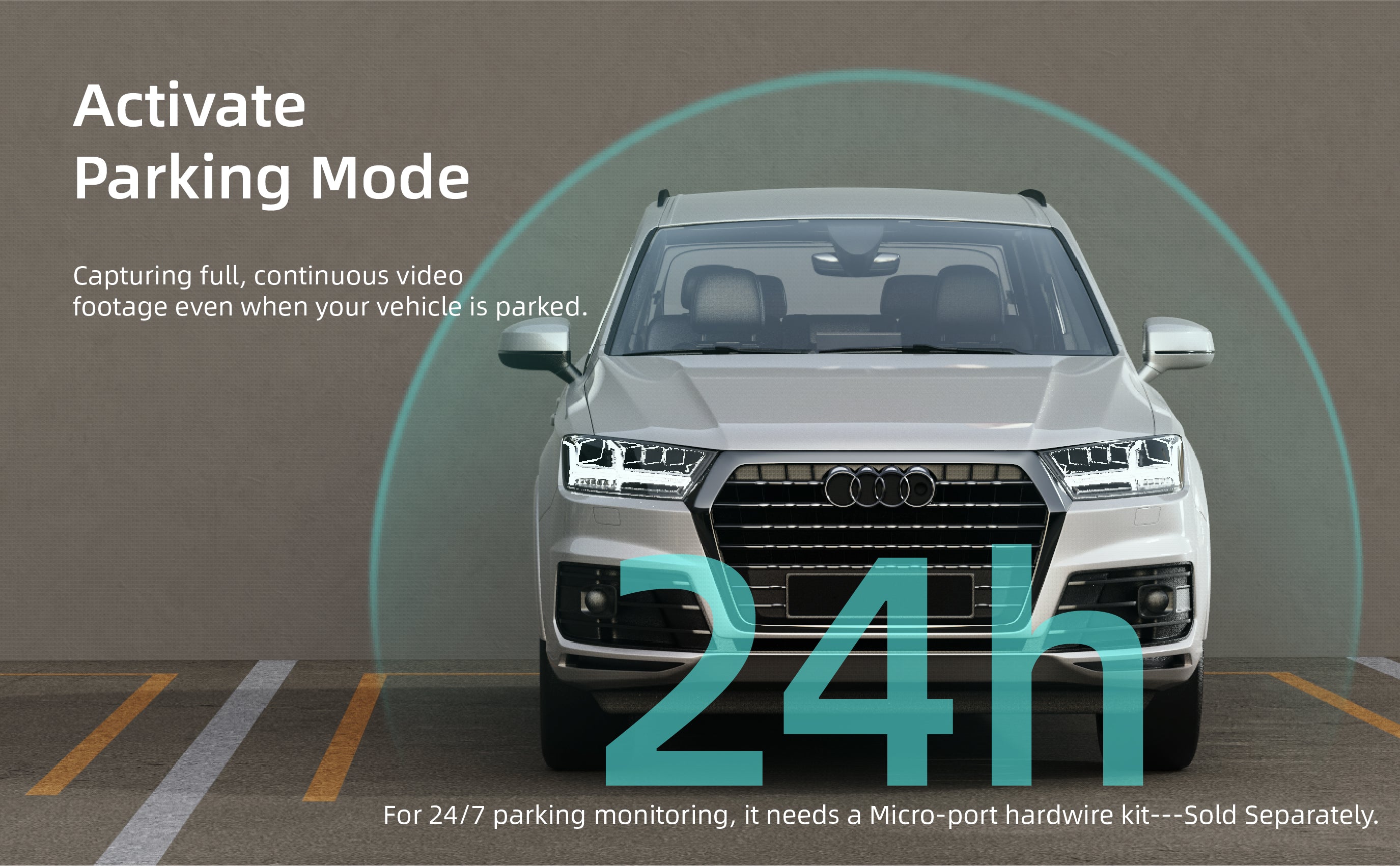 A3: Yes, any accessories like car charger, rear cable, suction mount and stickers are provided freely whenever you need. And please kindly note that this camera has a built-in battery. The battery capacity is small, which is the dashcam industry standard. A large can be dangerous due to potential battery explosion. If you need longer monitoring during parking, we suggest using a hard wire kit for power supply. The hardwire kit can also be provided freely on request.