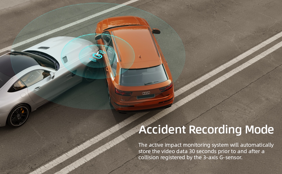 【Emergency Accident Lock】 - Built-in G-sensor, the iZEEKER car camera will automatically lock the current video when it detects a shake or collision, which won't be overwritten by the loop recording and saved at a separate event folder.