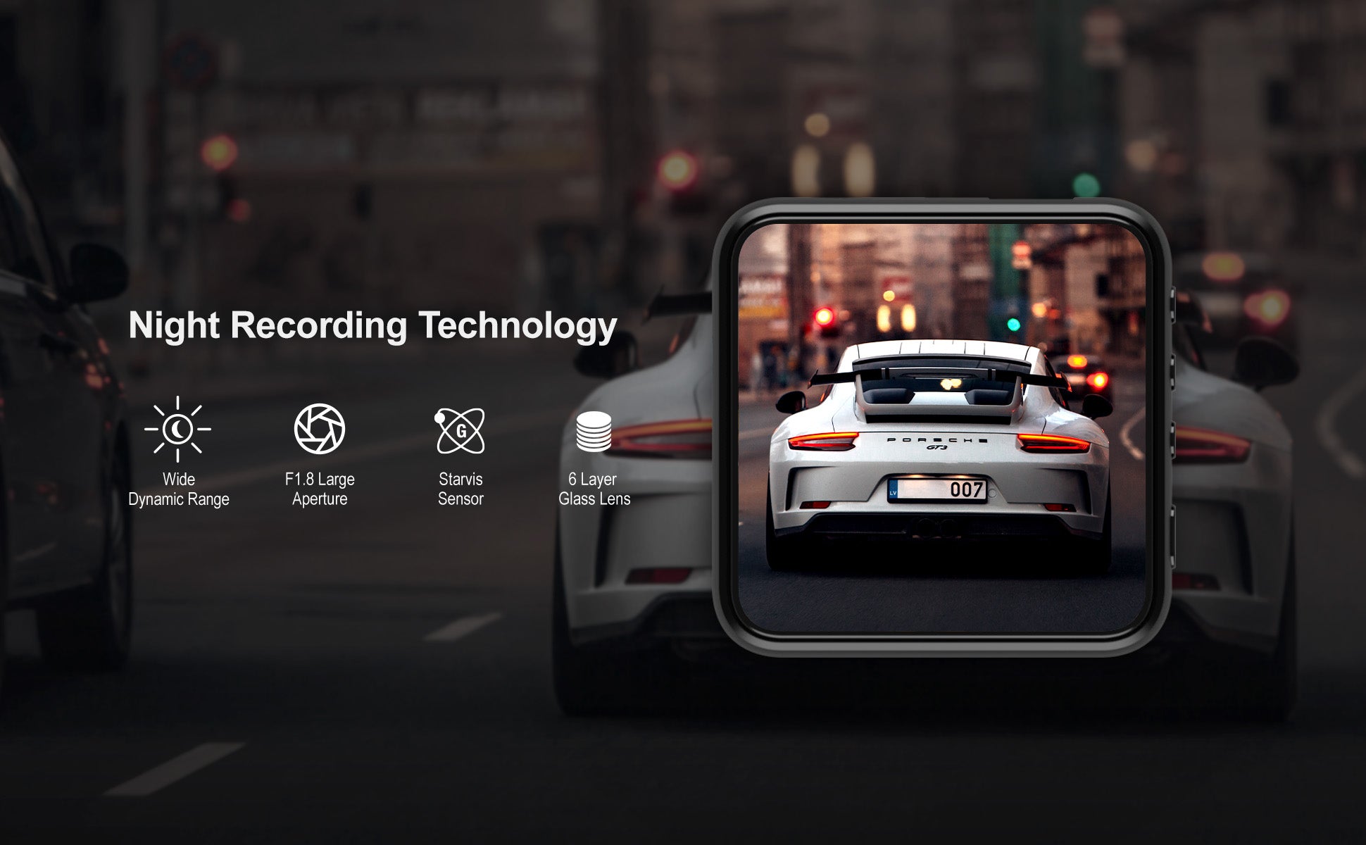 Mit dem Starvis-Sensor und der großen Blende F1.8 bietet diese Dashcam für die Vorder- und Rückseite einen schönen Nachtsichteffekt, der für die meisten Szenen ausreicht.