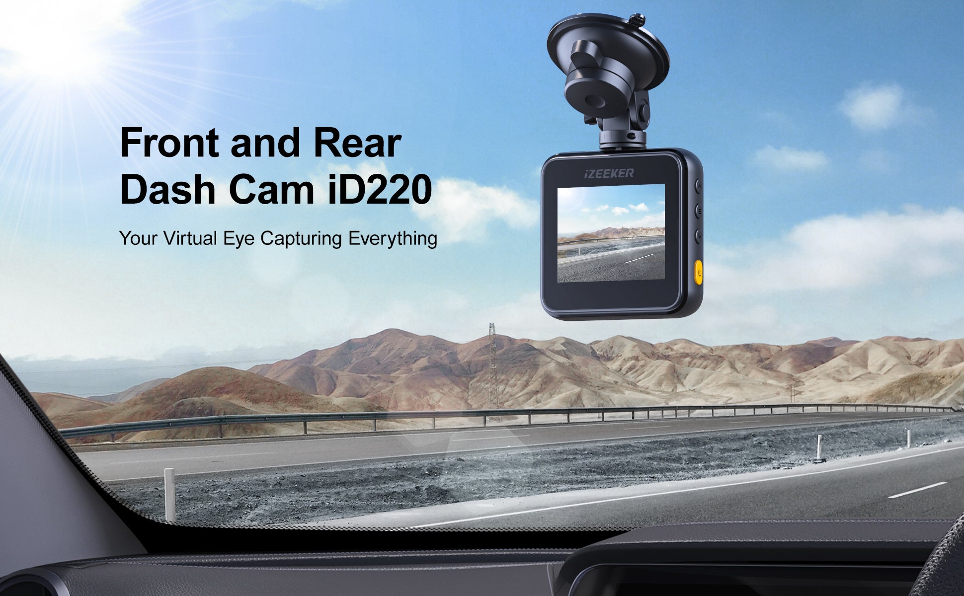 iZEEKER iD220 Dash Cam Front and Rear with SD Card 1080P Full HD Car Camera