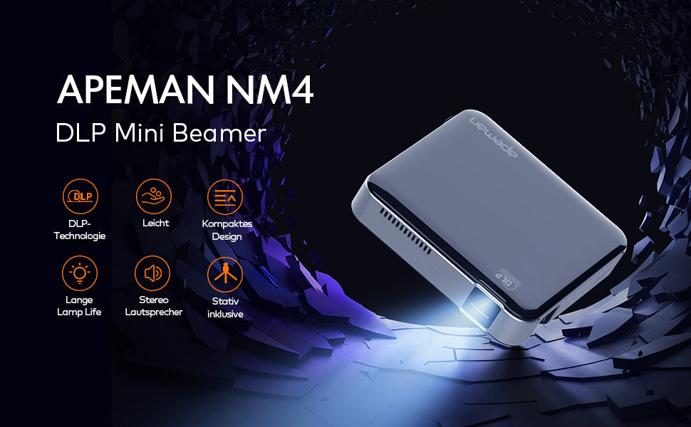 Pocket size mini projector (3.86x3.86x0.85 inches) and lightweight (0.44 lbs). Easy to take and operate. It comes with a TRIPOD with a fully functional 360° rotation and firm stand. The neat projector is an ideal and popular gift!