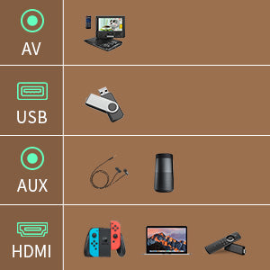 The mini projector has multiple interfaces, including HDMI, AV, USB, and AUX, making it ideal for use in various scenarios.