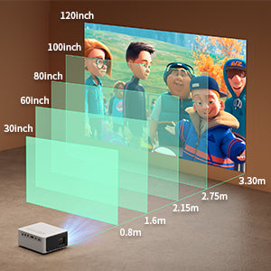With a projection size range of 30 to 120 inches, you can easily adjust the distance between the projector and the wall to achieve the perfect viewing size, recommended between 40 to 100 inches.