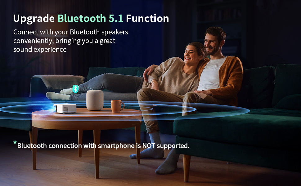 *Bluetooth connection with smartphones or computers is not supported,because the mini projector and these devices are inputs, they cannot be connected directly.